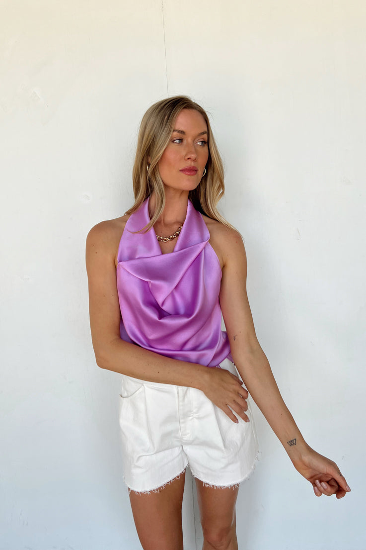 Sii elegante e unica con questo top Bellflower ultra-femminile! Con una delicata tonalità lavanda, un morbido scollo a cappuccio e un audace stile halter, attirerai l'attenzione in un lampo. Il tessuto satinato aggiunge una finitura lussuosa, mentre il taglio corto porta questo top a un livello superiore di eleganza! Abbinalo a una minigonna o a pantaloni a vita alta e tacchi per la tua prossima serata fuori.