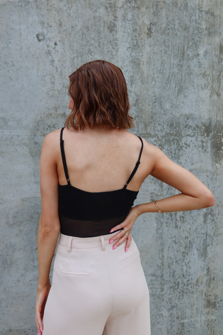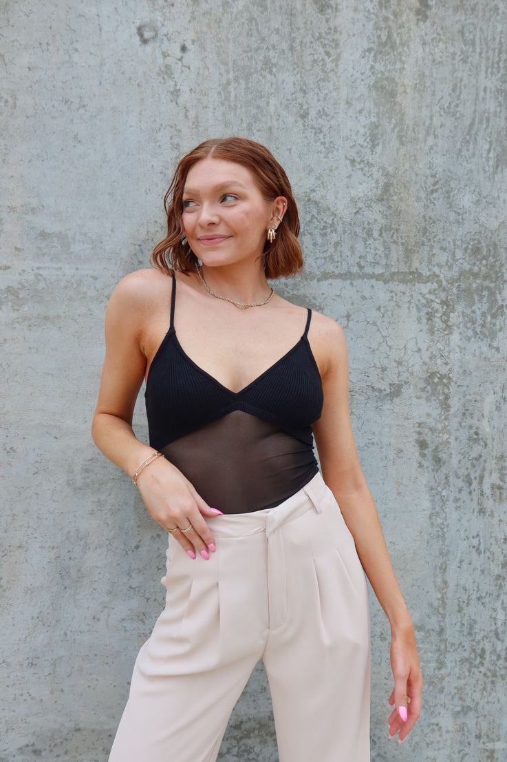Rompi gli schemi e rendi indimenticabile il tuo look con il body Kendall. La vita trasparente e le spalline sottili attireranno l'attenzione, mentre il raffinato tessuto nero lo renderà un capo audace. Osa distinguerti e apparire sempre al meglio.