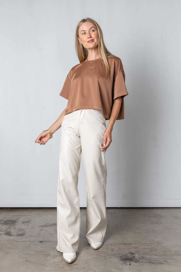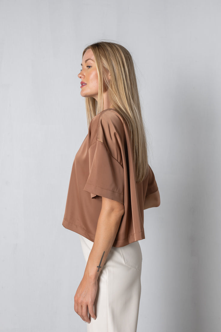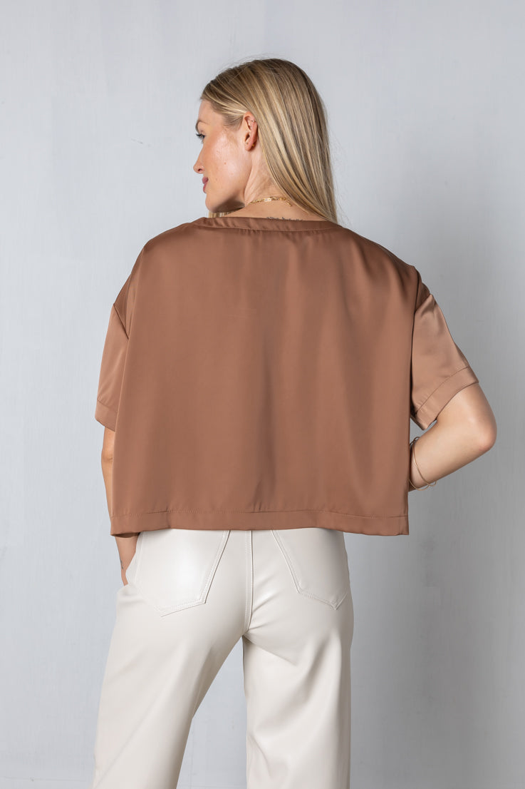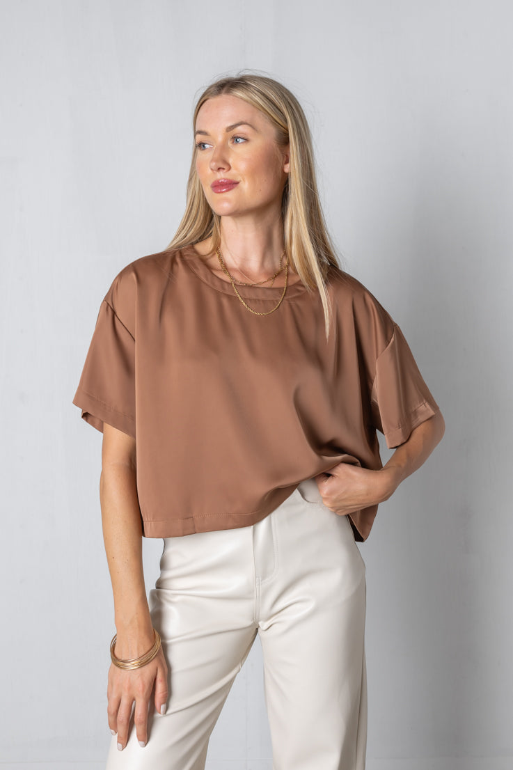Il top Without a Trace è l'aggiunta perfetta a qualsiasi guardaroba; con il suo colore moka e la vestibilità oversize squadrata, arricchirà qualsiasi outfit mantenendoti comoda! Il suo stile corto e le maniche corte con spalle scese sono ideali per un look rilassato ma elegante, così puoi indossarlo con sicurezza senza ombra di dubbio!