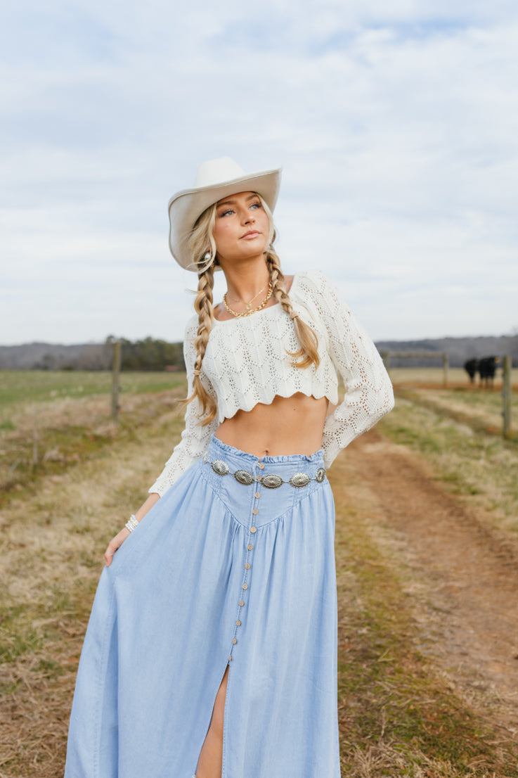 • Top lavorato all'uncinetto color crema