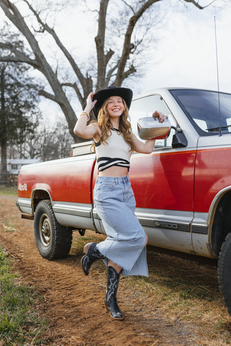 Mostra il tuo stile unico con la nostra gonna in denim Founder's Fave! Realizzata in denim chiaro, questa gonna midi è perfetta per ogni occasione. Non importa la stagione, adorerai il modo in cui si abbina a TUTTO. Cosa aspetti? Preparati a innamorarti della tua nuova gonna preferita!
