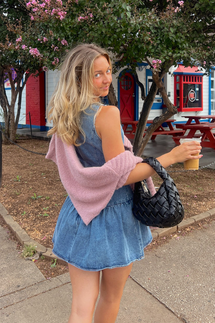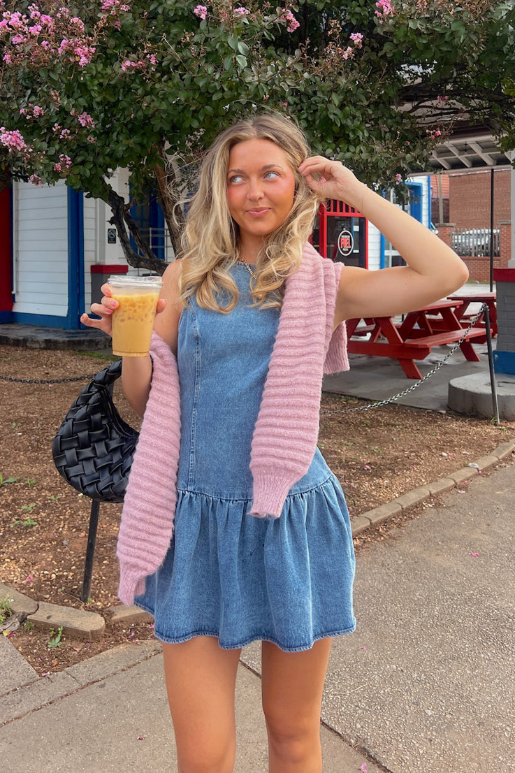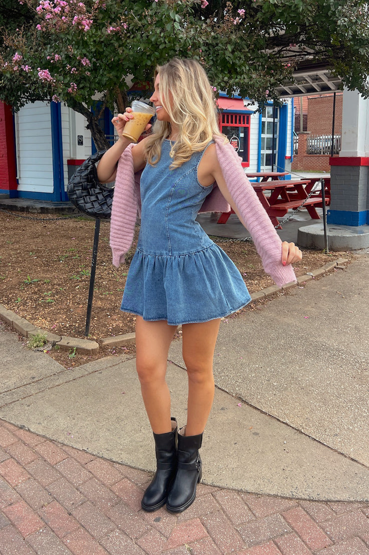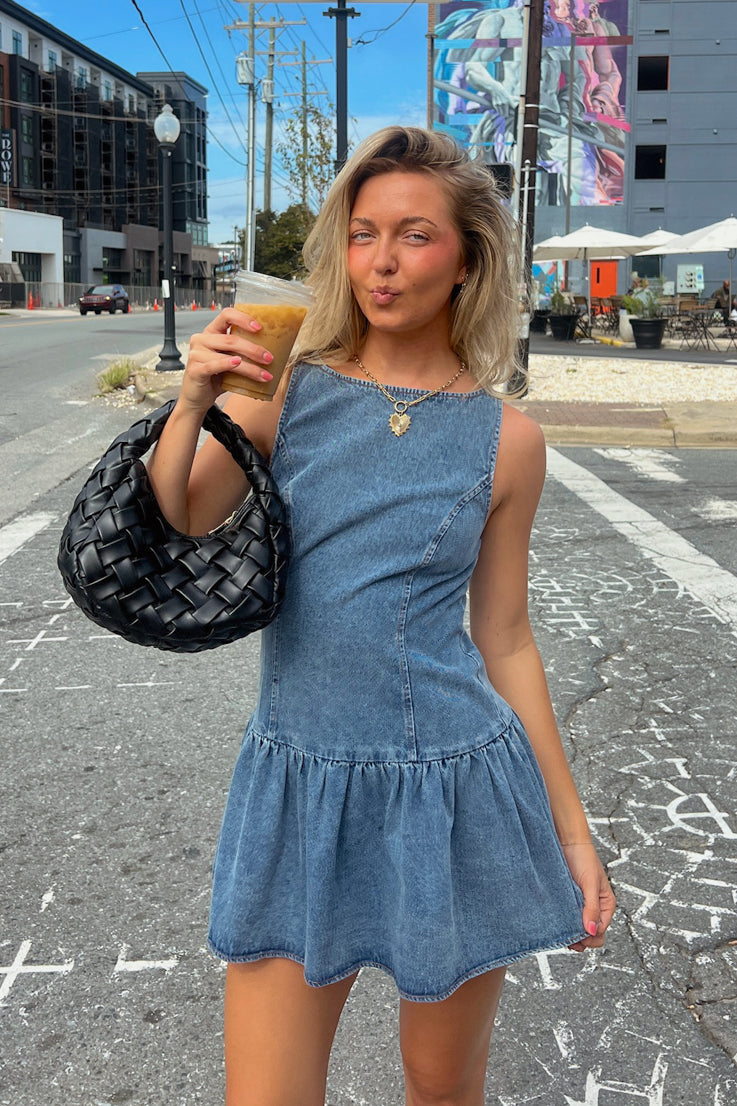 • Mini abito in denim senza maniche