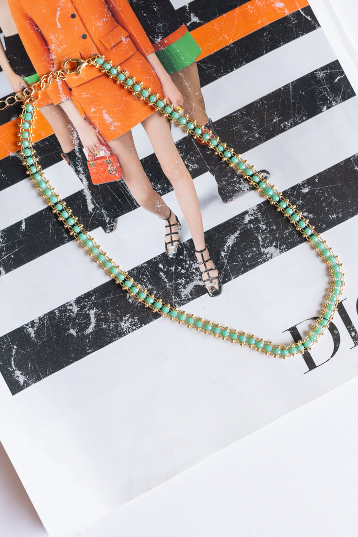 Sarai invidiosa di verde quando sfoggerai questa splendida collana! Caratterizzata da una piccola perla di vetro verde e scintillanti dettagli dorati, questa collana girocollo è perfetta per aggiungere un tocco di colore a qualsiasi outfit. Non lasciartela sfuggire: acquistala oggi stesso! Questa collana è lunga 4,2 m con un'estensione di 7,6 cm.