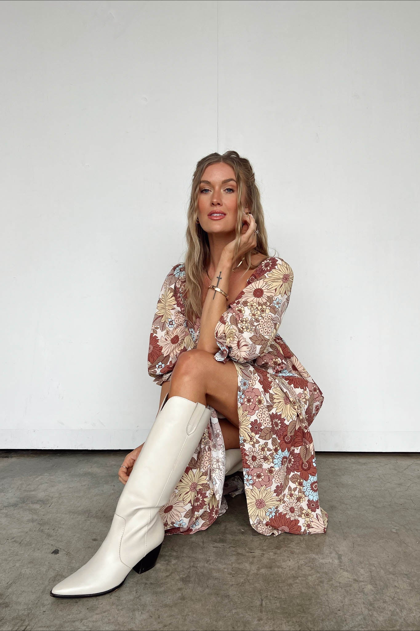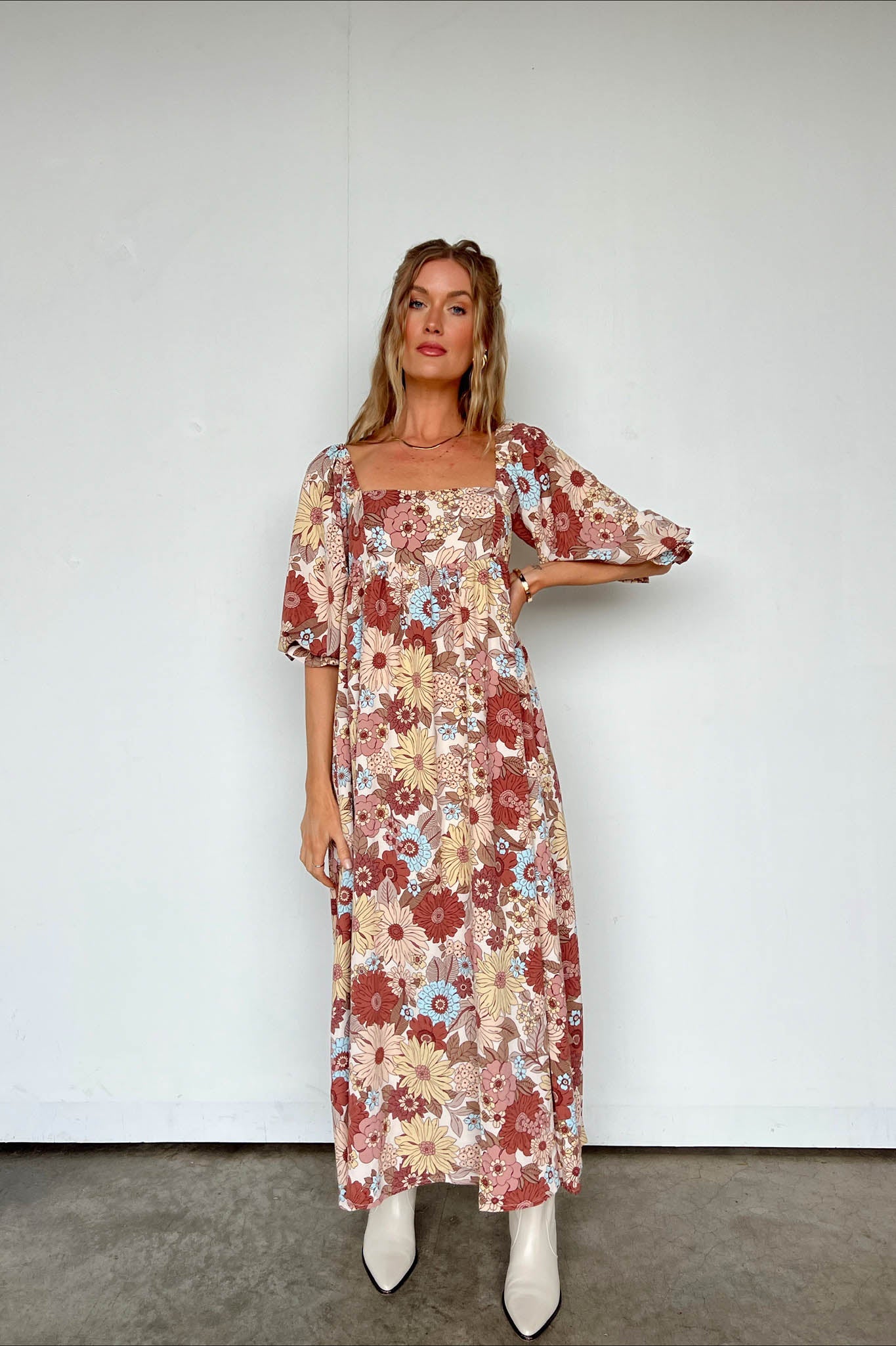 Abito lungo con margherite retrò