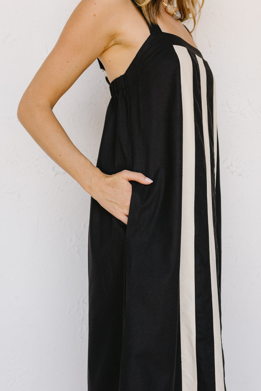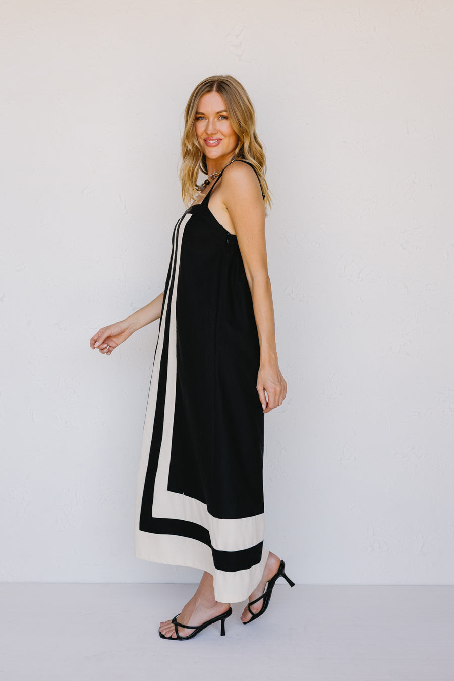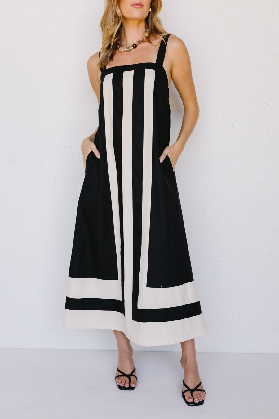• Abito in misto lino nero e crema