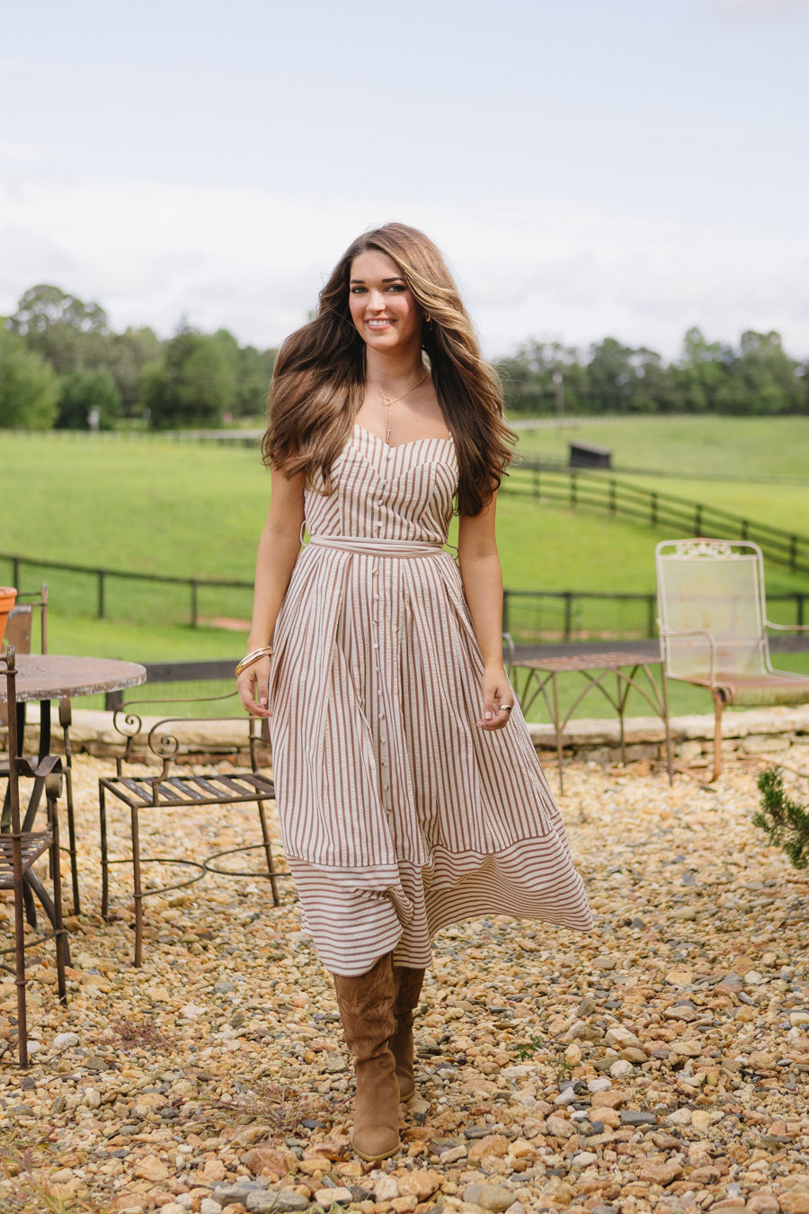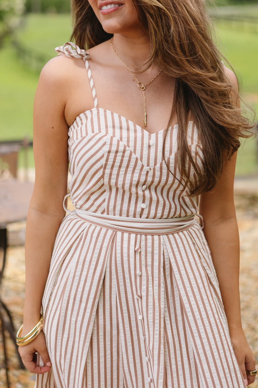 • Abito a righe marrone e crema