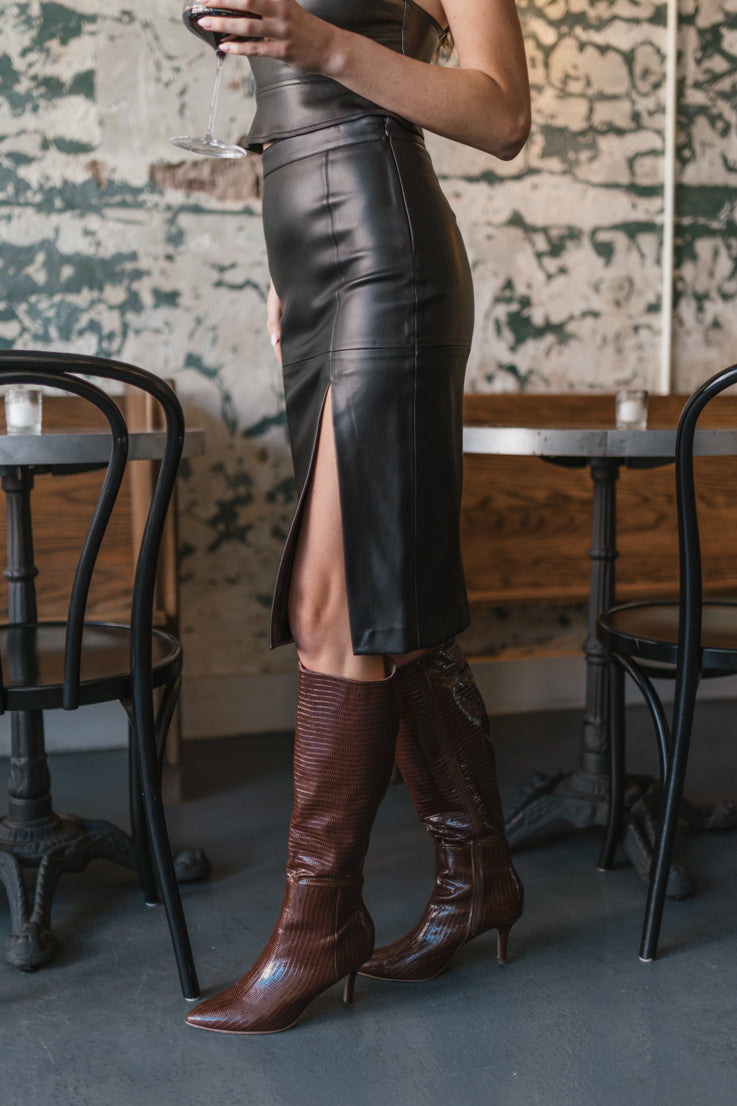 • Gonna midi in pelle vegana