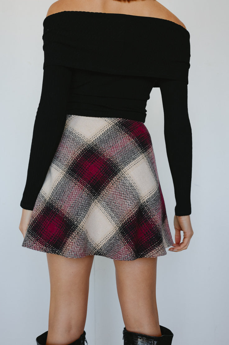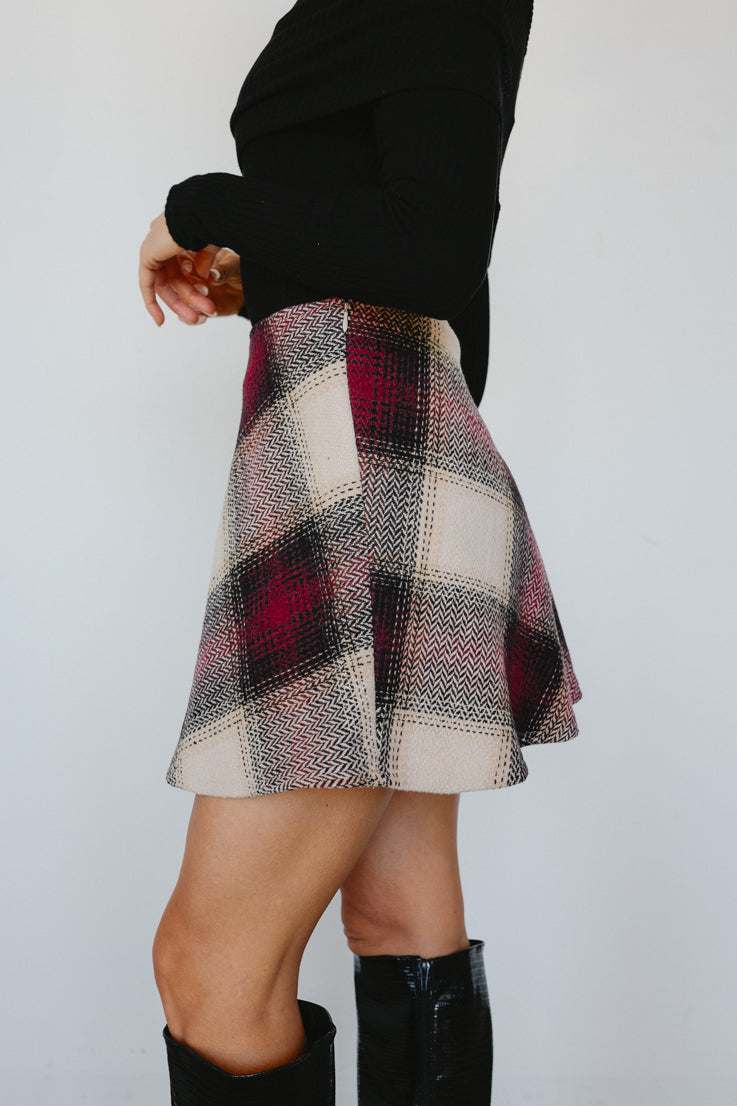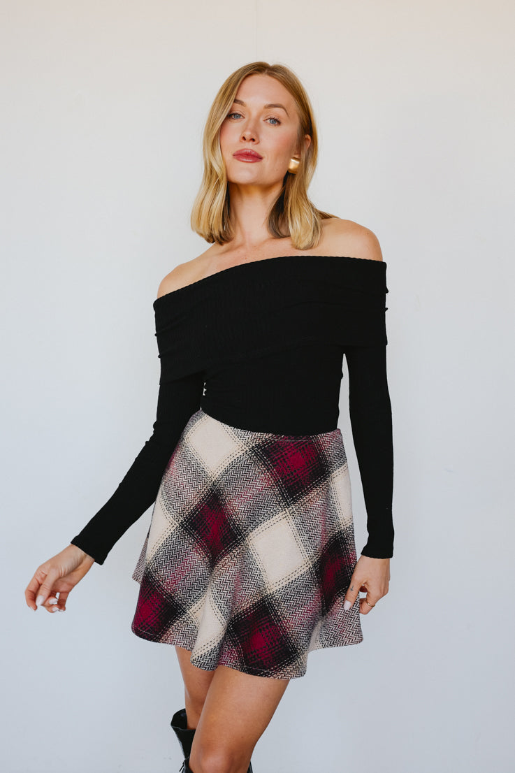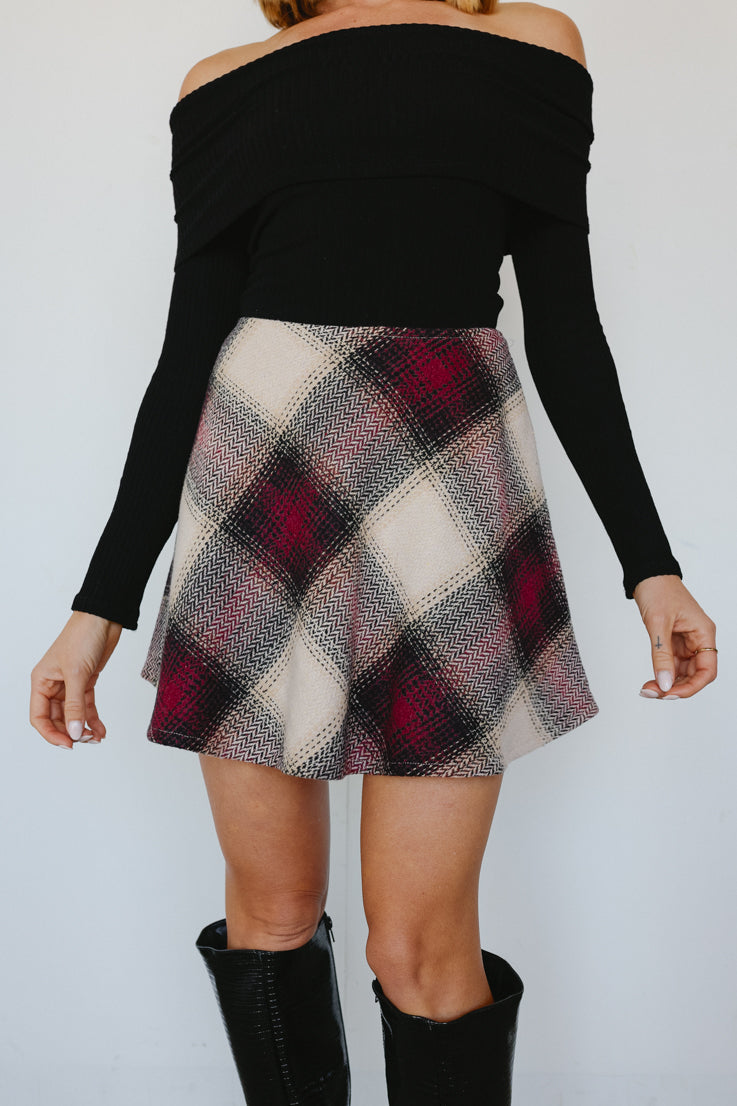 • Gonna scozzese bordeaux e crema