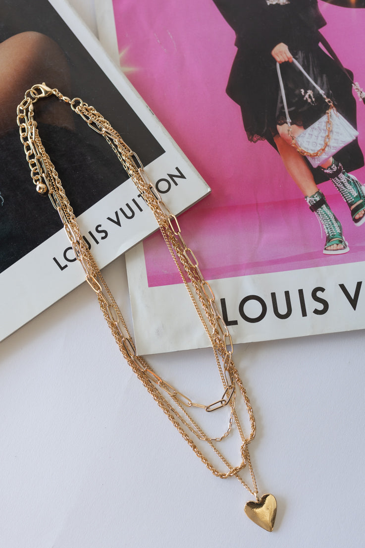 Completa il tuo look con questa splendida collana a strati! Quattro delicate catene si uniscono per uno stile unico, con un delicato ciondolo a forma di cuore a completare il tutto. Indossa il tuo cuore sulla manica, o, in questo caso, sul collo.