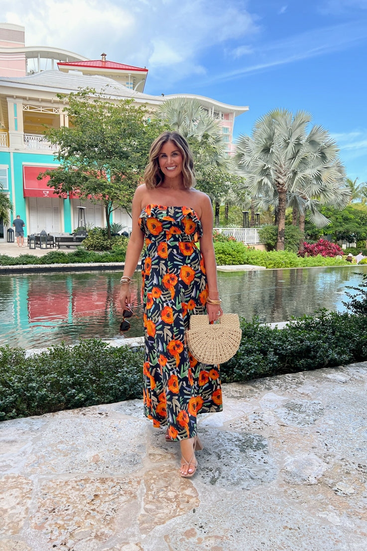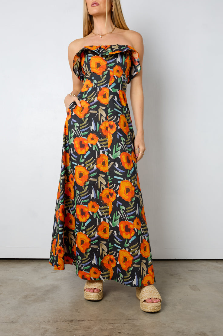 Fai una dichiarazione di stile con questo abito Big Deal! La stampa floreale arancione è semplicemente stupenda e il design midi senza spalline è il modo perfetto per mettere in risalto il dettaglio a balze sul seno. Che lo abbini a sandali o tacchi, questo look disinvolto non passerà inosservato!
