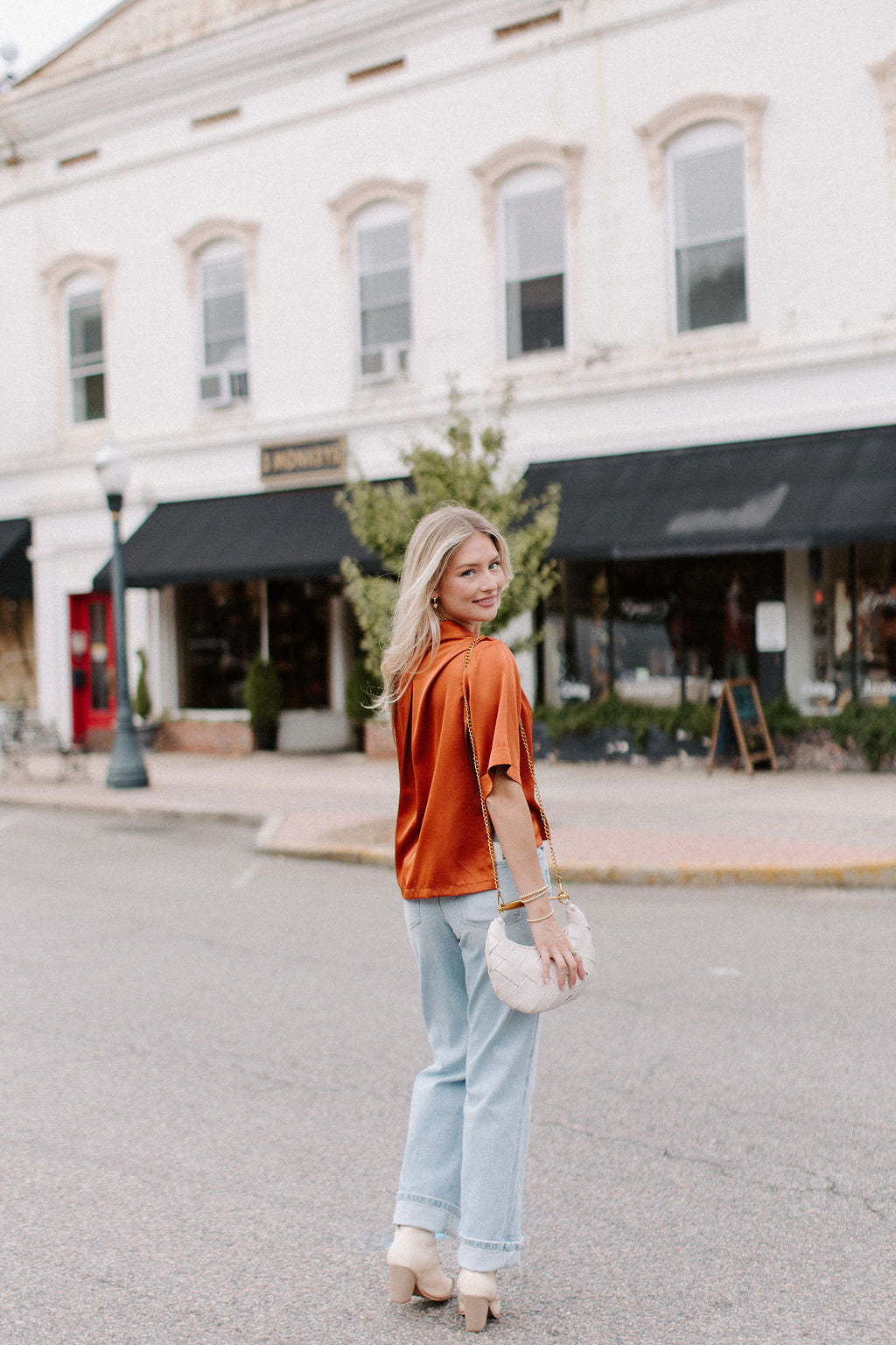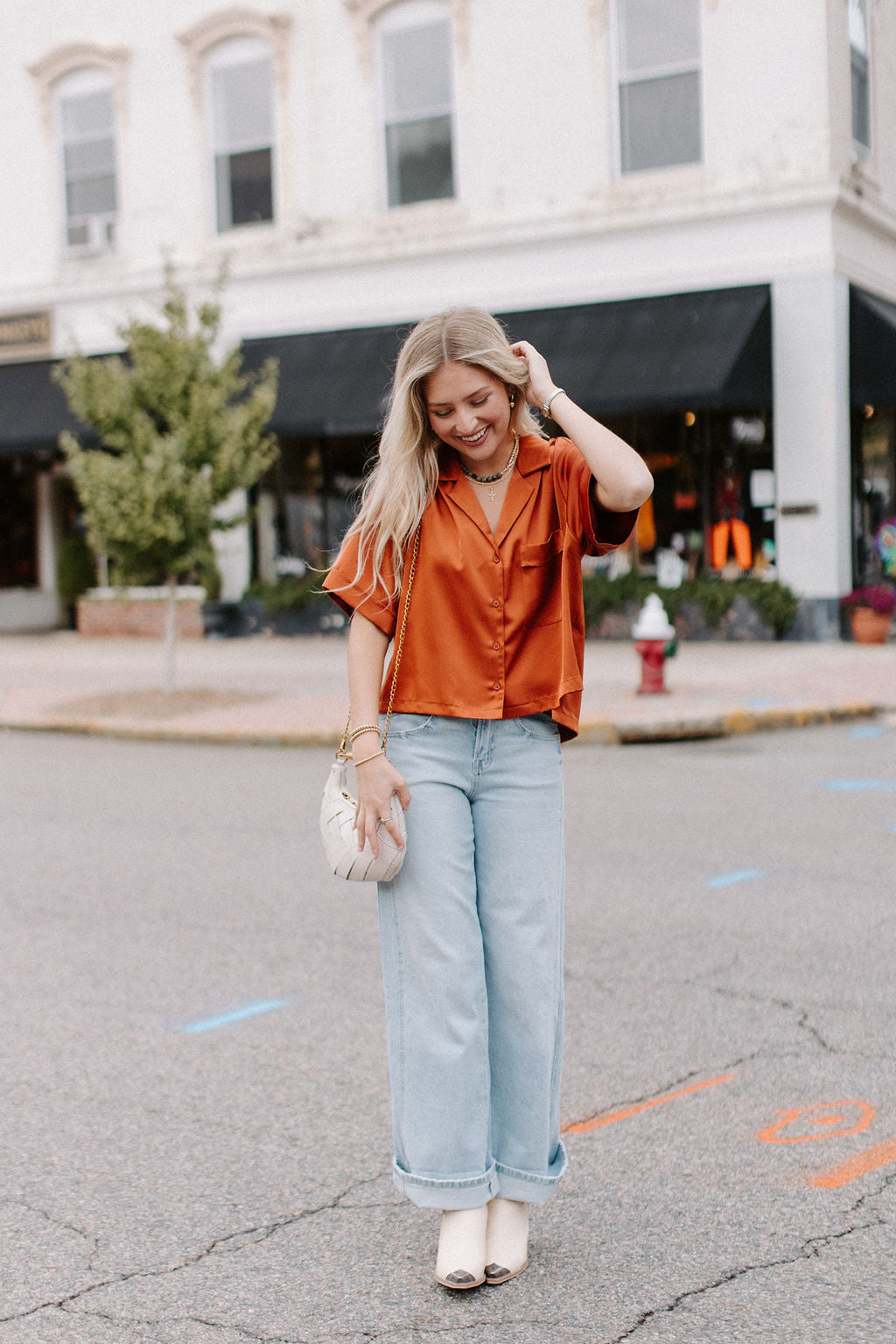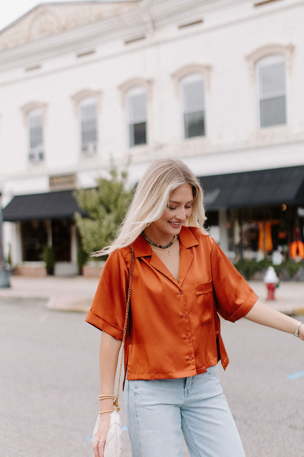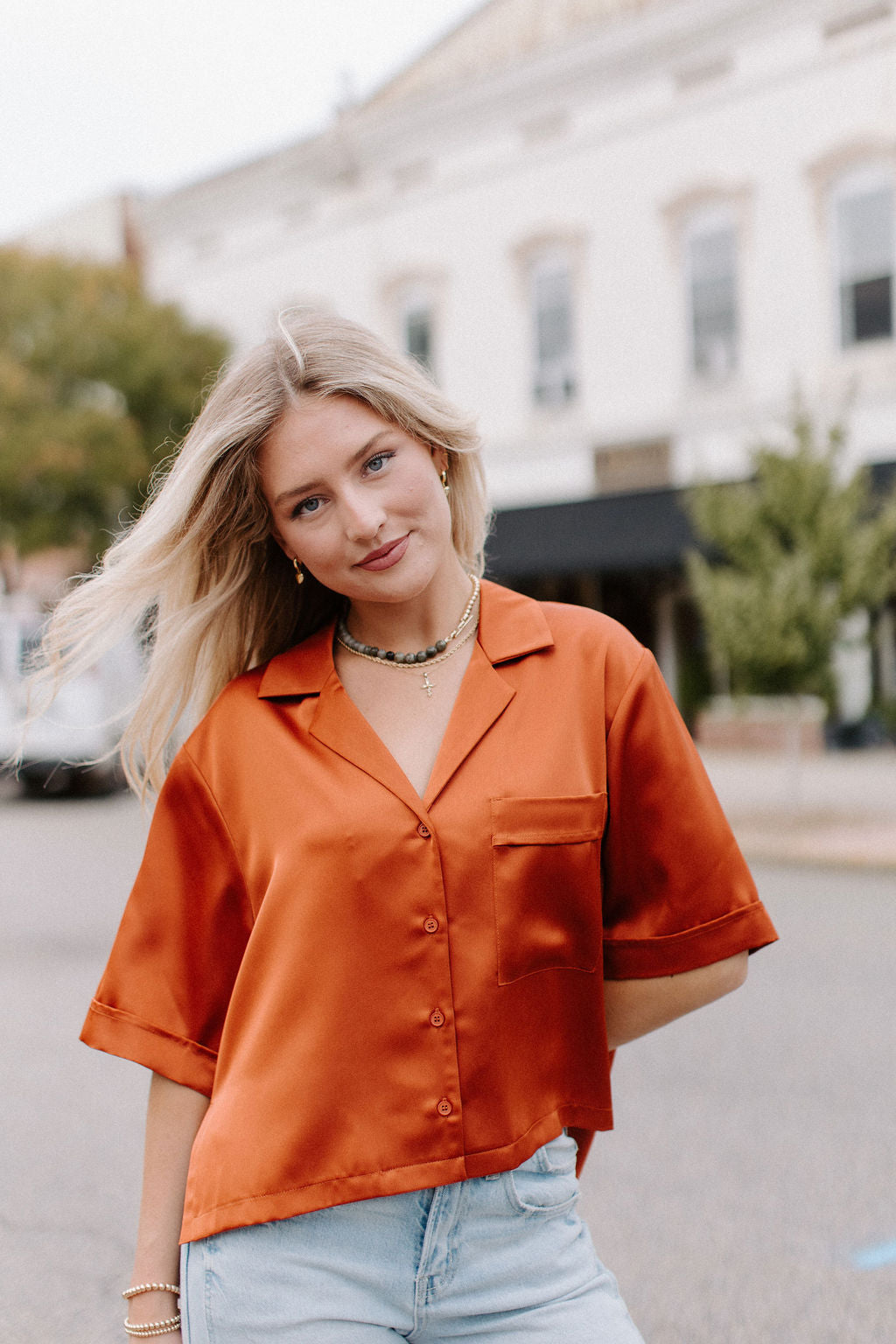 • Top in raso con bottoni