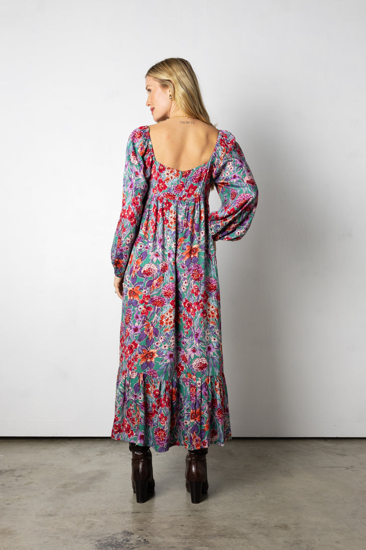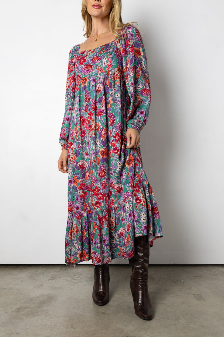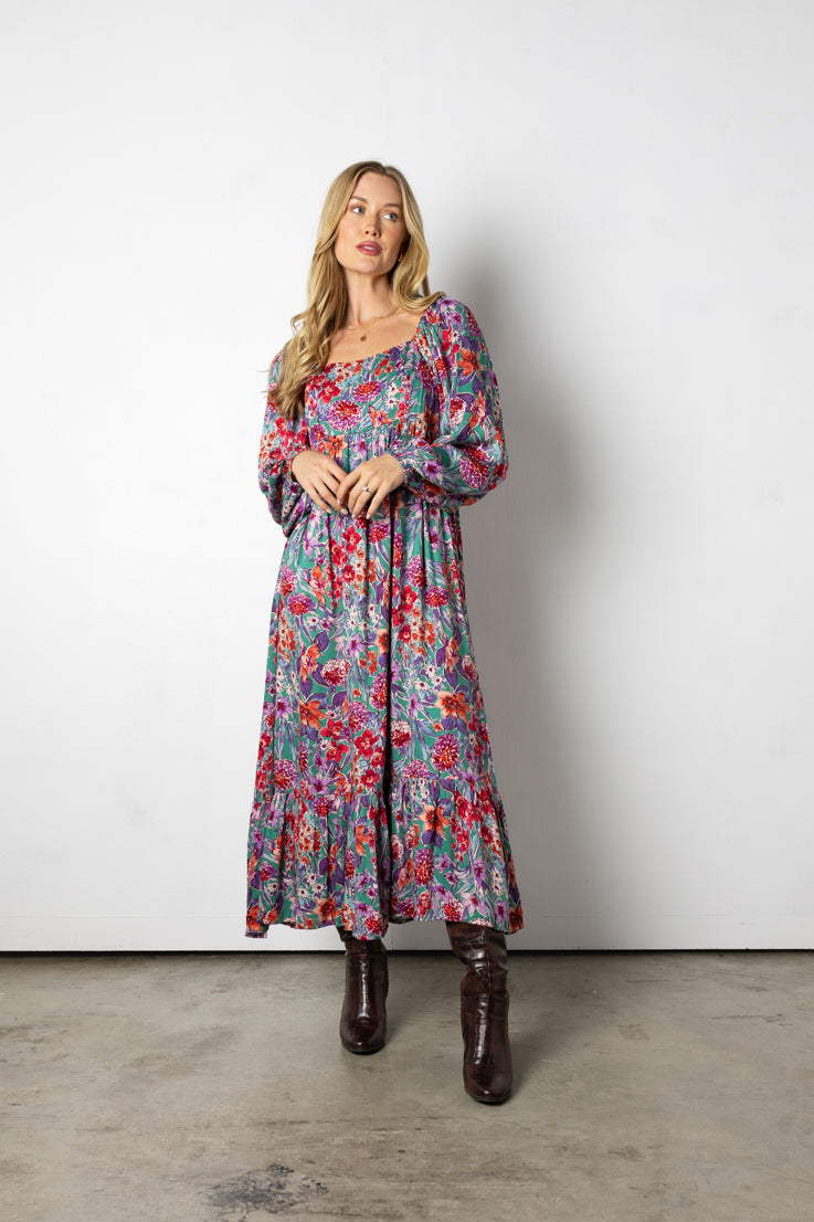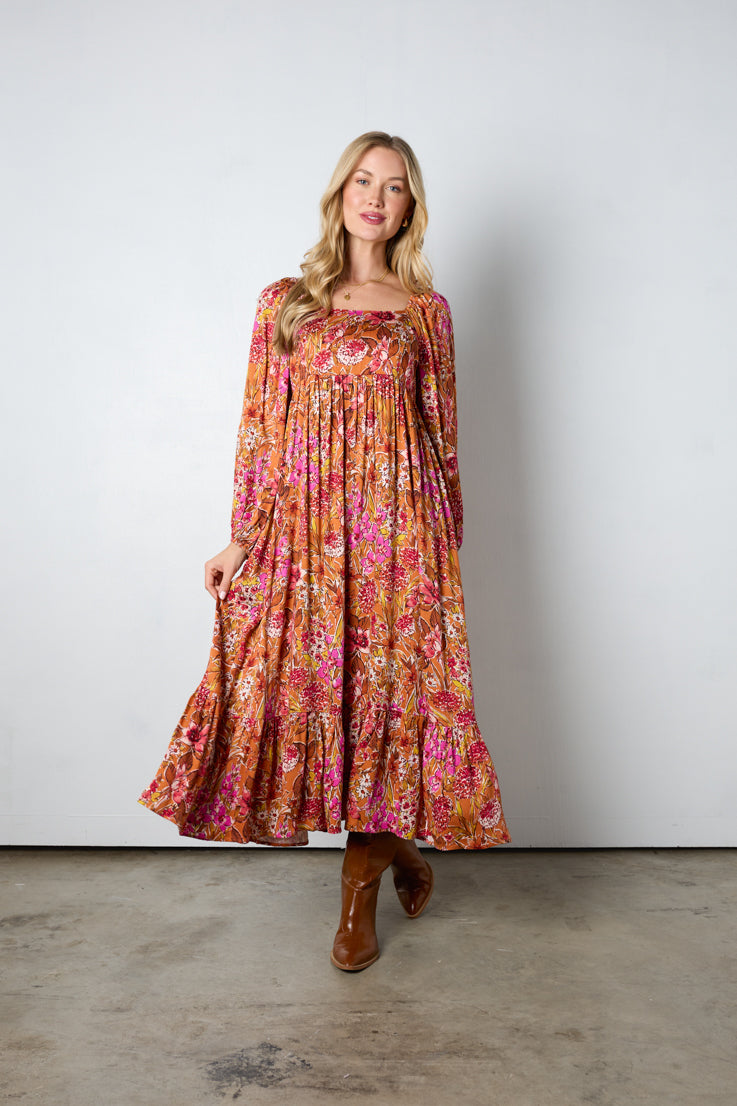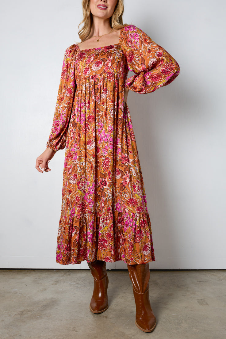 Abito lungo con fiori autunnali