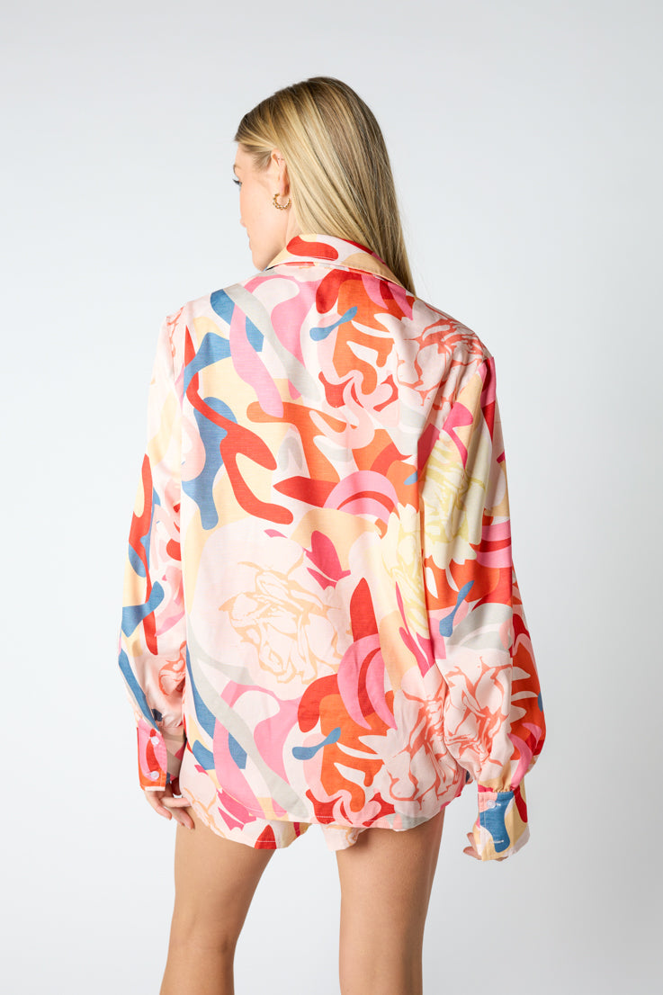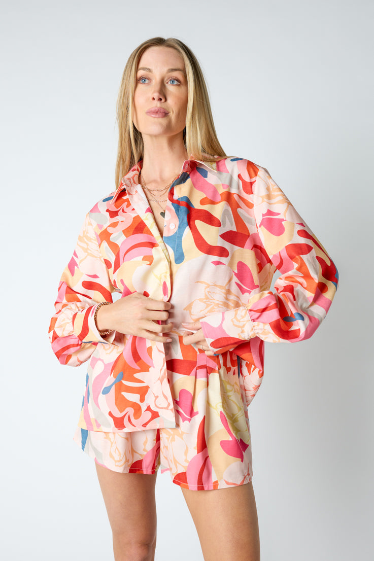 Distinguiti dalla massa con il nostro top Just Makes Sense! Questo top con colletto abbottonato presenta un motivo floreale astratto, luminoso e audace, che risalterà ma si armonizzerà con il tuo look. Rendi il tuo look coordinato abbinandolo agli shorts Just Makes Sense. Sarai impeccabile e chic in ogni occasione.
