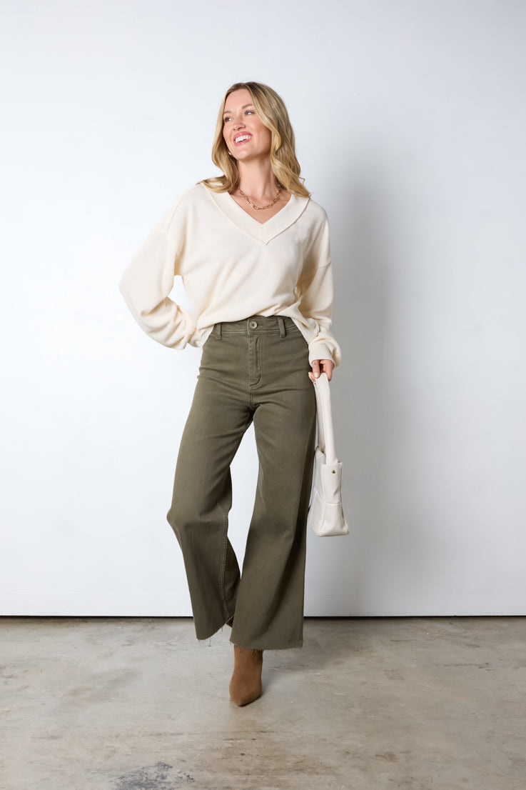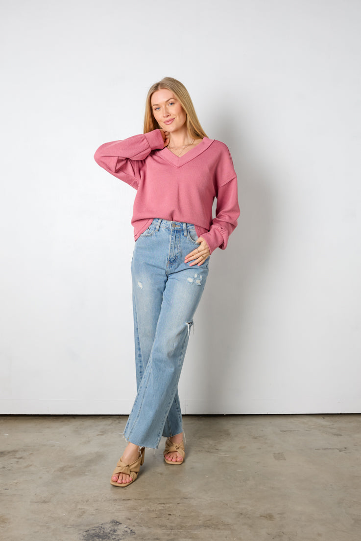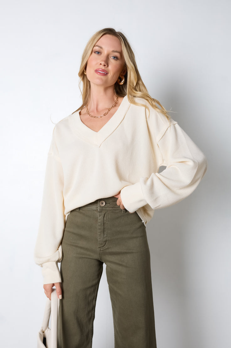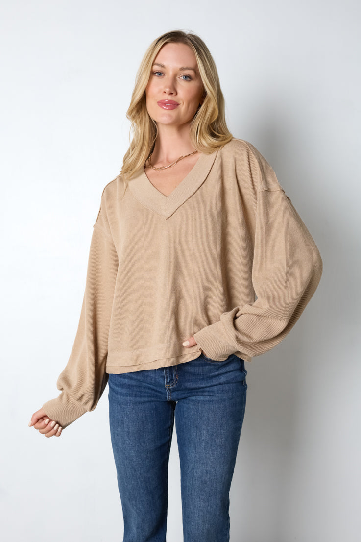 Mostra il tuo stile disinvolto con questa felpa semplice e lineare! È il perfetto mix di eleganza e comodità, con scollo a V, maniche a palloncino e spalle scese. Che tu sia in giro o in relax, sarai comoda ed elegante con questo capo indispensabile! Disponibile nei colori moka, crema o rosa.