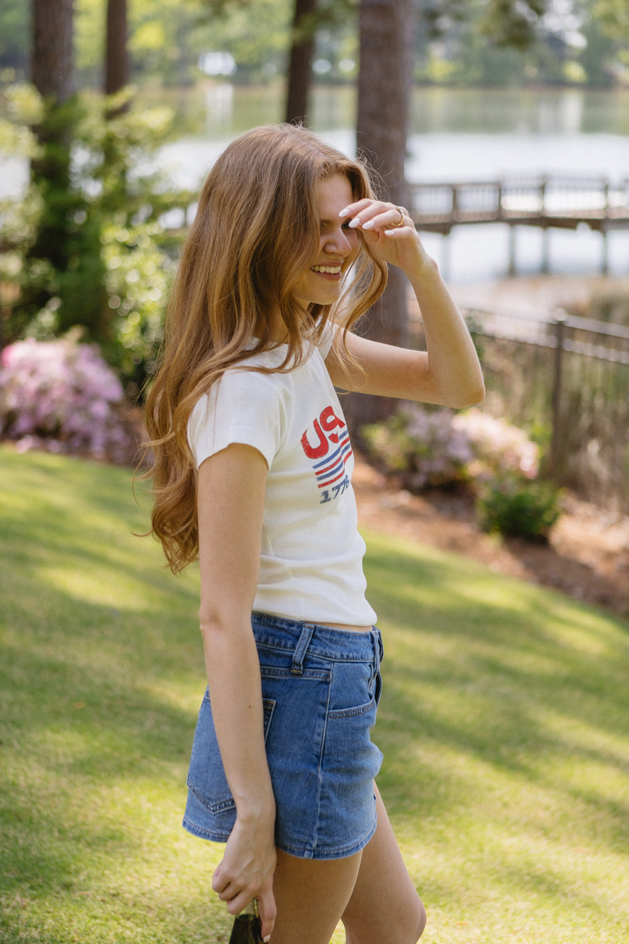 • Adesivo con bandiera e scritta "USA" sul davanti con l'anno 1776