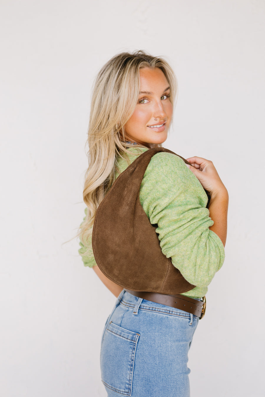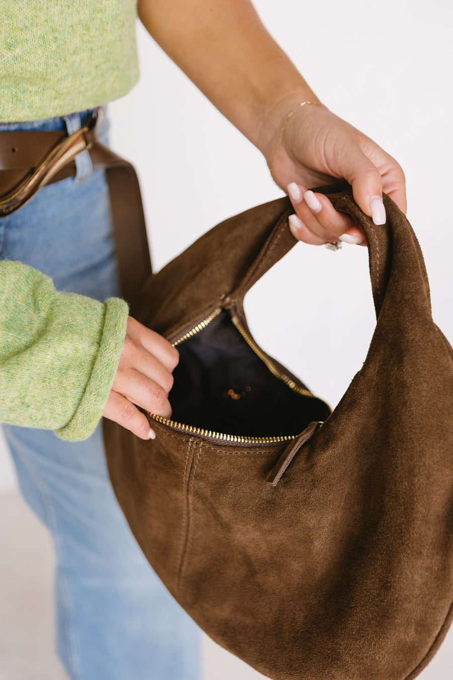 • Borsa a mano in finta pelle scamosciata color cioccolato
