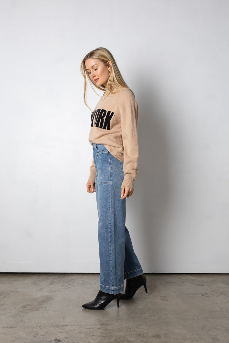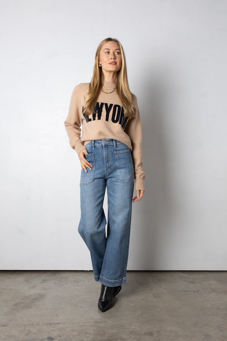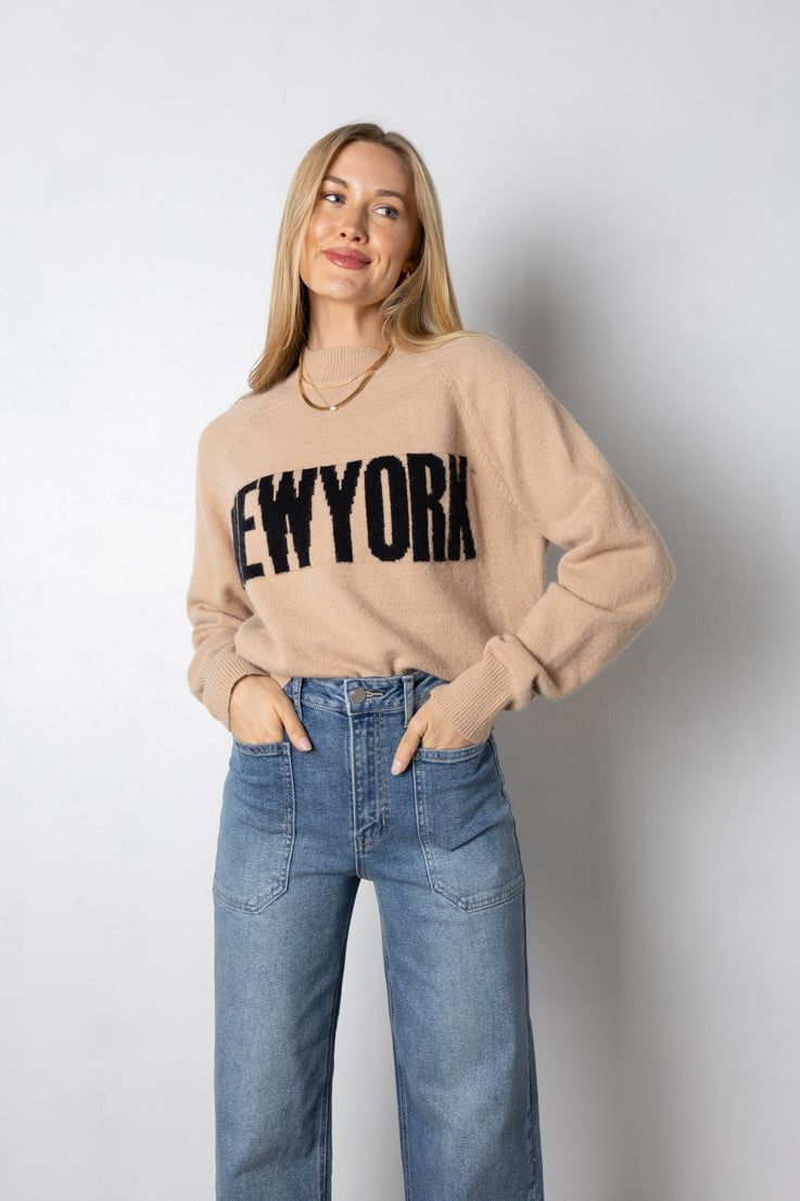Rimani comoda ed elegante per le strade della città con questa classica felpa color talpa! La vestibilità oversize e le maniche lunghe sono perfette per rilassarsi o fare commissioni, inoltre la scritta nera "New York" aggiunge un tocco unico. Sta benissimo con i tuoi jeans o leggings preferiti.