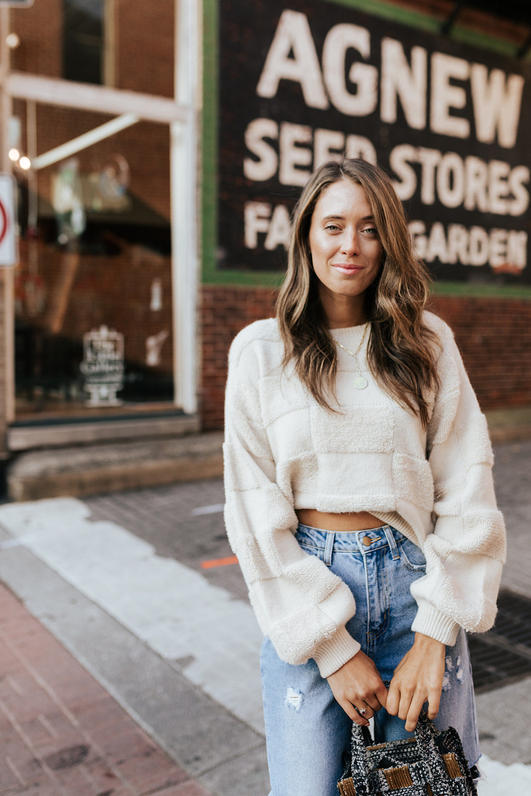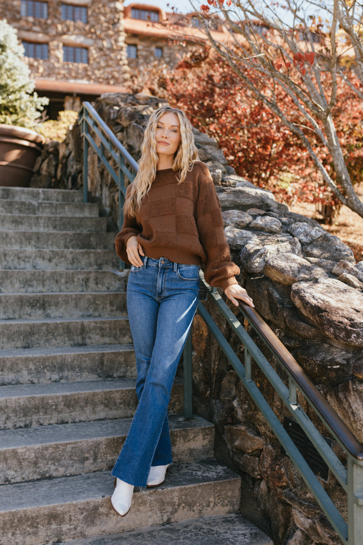 Senza dubbio, questo maglione ti farà sentire come se stessi camminando sulle nuvole. È morbidissimo e ha un motivo a quadri in soffice spugna, disponibile in un color crema neutro o marrone cioccolato. Questo maglione starebbe benissimo con i jeans o con una divertente gonna in similpelle. Affrettati, questo non durerà a lungo!