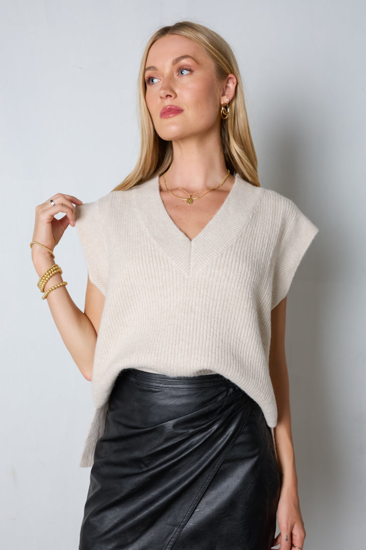 Rimani alla moda, comoda e assolutamente di tendenza con il gilet Kerri. Realizzato in maglia a coste, questo gilet presenta un classico scollo a V e un design senza maniche che si abbina perfettamente a qualsiasi outfit. Disponibile in una splendida tonalità di beige, è il colore neutro perfetto da aggiungere al tuo guardaroba.
