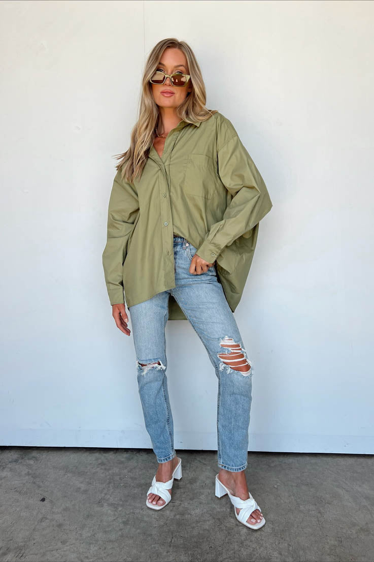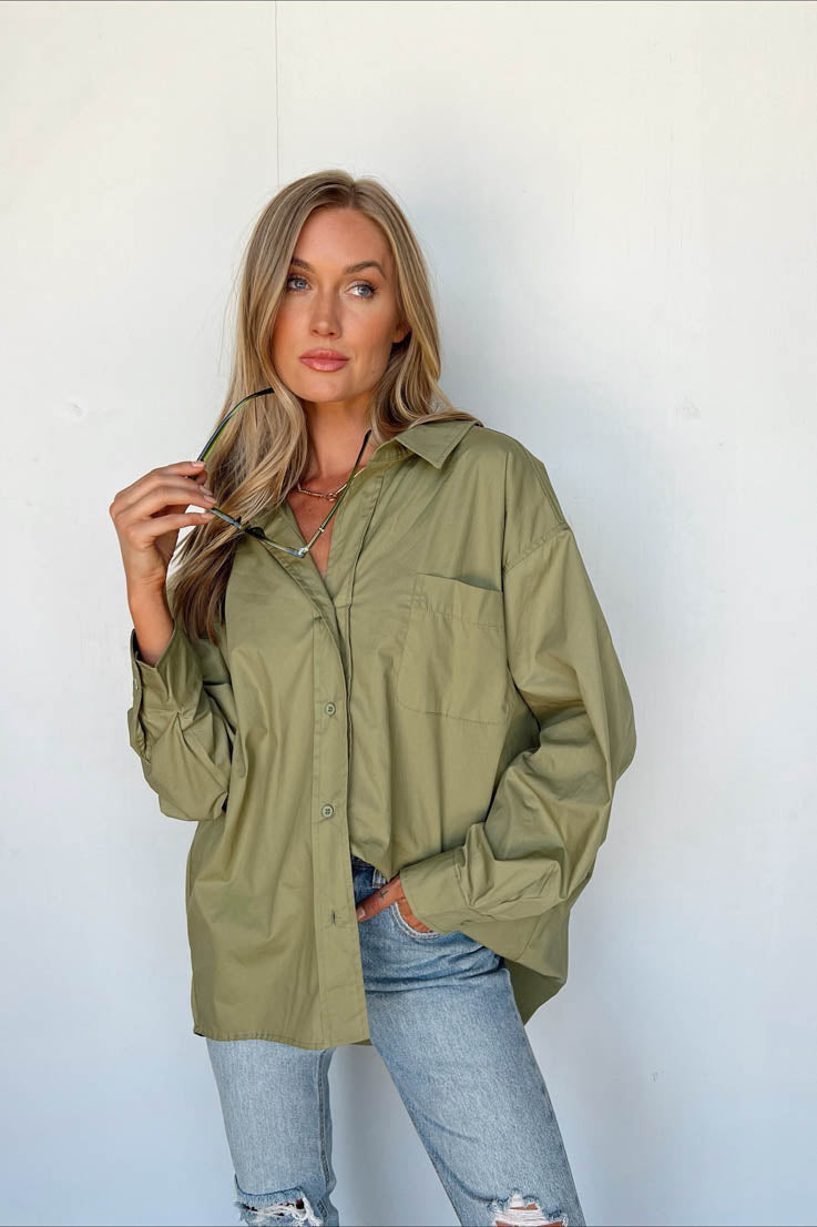 Semplice ed elegante: ecco tutto ciò che devi sapere. Questa maglia con bottoni è fatta di ciò di cui sono fatti i sogni. Amiamo la vestibilità oversize in stile boyfriend. Indossala con i tuoi jeans preferiti, stivaletti e giacca di jeans. Disponibile in bianco, nero o verde oliva.